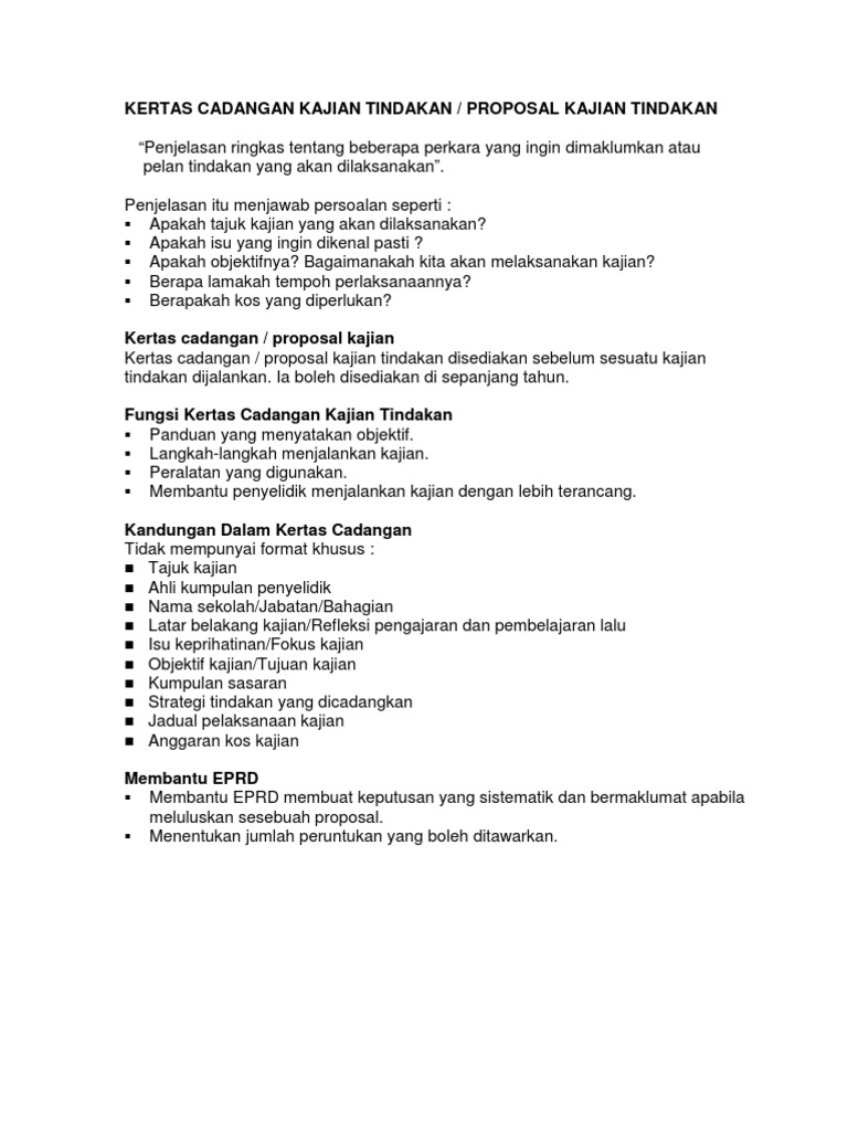 Contoh Proposal Kajian Satu Muka Surat